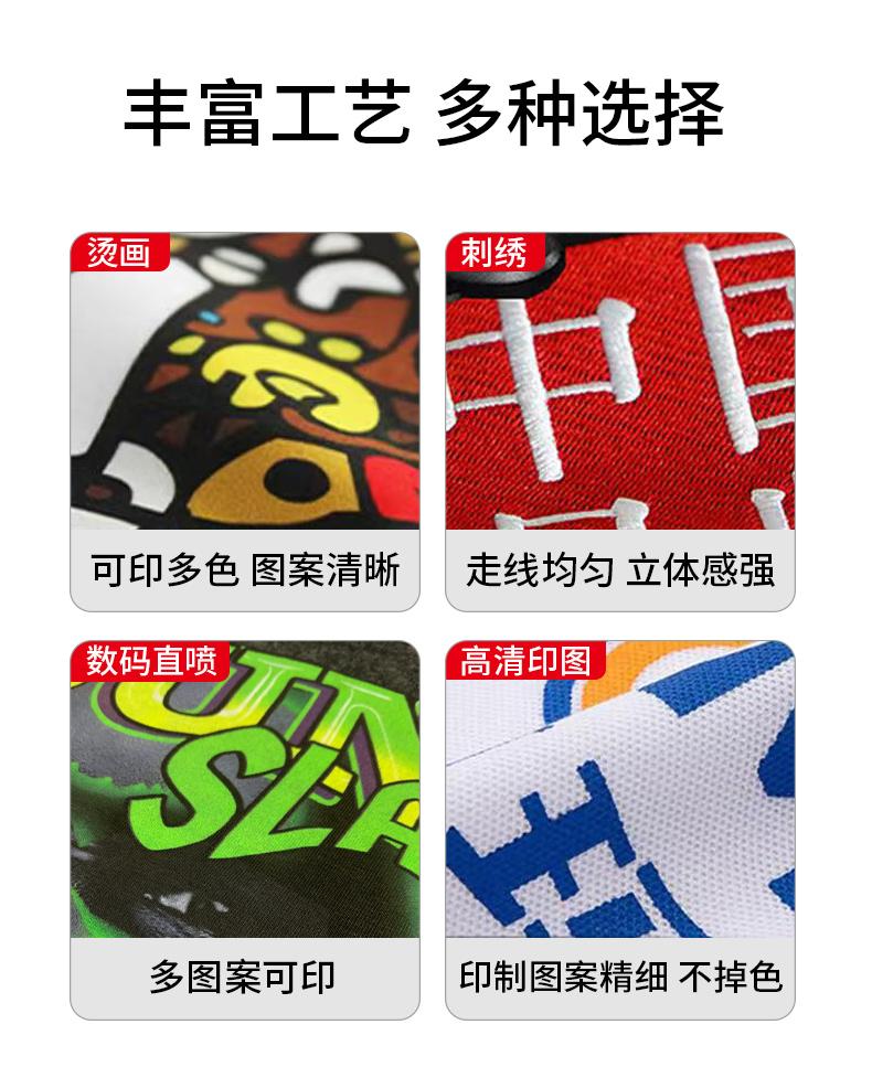 其次,印花工藝不能忽視,它直接決定衣服的顏值與耐用度。好的印花色彩鮮艷飽滿、圖案清晰細膩,不易脫落、不褪色,反復清洗后依然能保持完好。常見的優質工藝有絲網印、數碼直噴、立體刺繡,可根據需求選擇:絲網印適合大批量定制,性價比高;數碼直噴適合復雜圖案,還原度高;立體刺繡質感突出,顯高端大氣,能更好地呈現LOGO或文化圖案的細節。